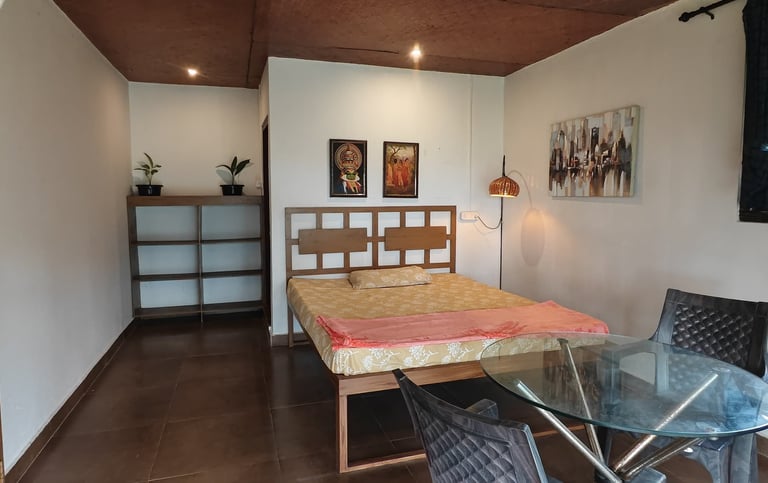 A cozy and charming Kerala cottage, ideal for solo travelers or couples looking for an intimate, nature-filled experience with picturesque surroundings.