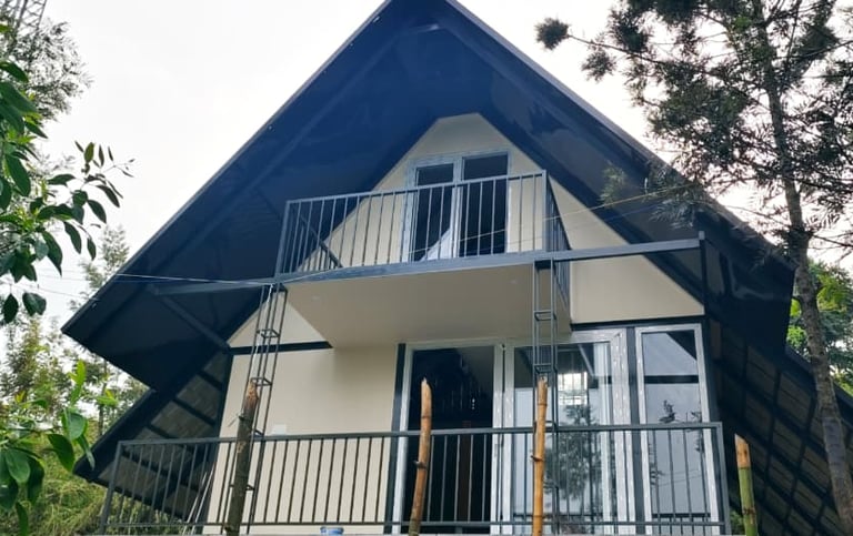 Escape to the most photogenic stay in the hills. Our signature A-Frame Cottage at Wild Grove Resort is where modern architecture meets raw wilderness. Designed with a steep, triangular roof that mimics the surrounding peaks, this cozy cabin offers a distinct "hideout" vibe that is perfect for couples and solo travelers looking for something different.