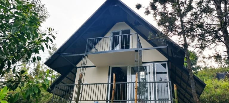 Escape to the most photogenic stay in the hills. Our signature A-Frame Cottage at Wild Grove Resort is where modern architecture meets raw wilderness. Designed with a steep, triangular roof that mimics the surrounding peaks, this cozy cabin offers a distinct "hideout" vibe that is perfect for couples and solo travelers looking for something different.